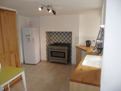 cuisine avec lave-vaisselle, grande cuisinière et grand frigo/Congélateur.