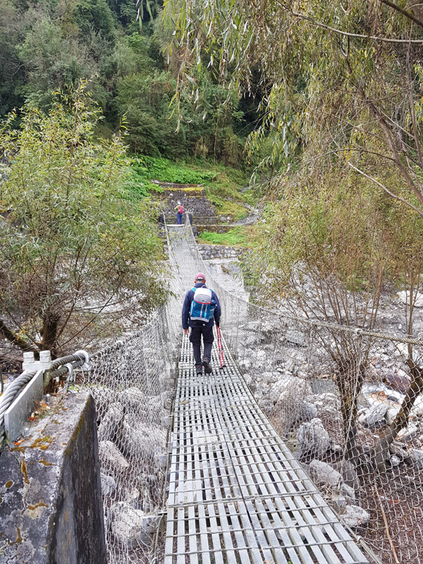 - Nangi (2260m) 4H à 5H de trek +200 -1200 mètres. Départ tôt le matin après avoir admiré le lever du soleil sur les sommets. Nous marchons sur une magnifique crête, avant de retrouver la forêt jusquà un col. Descente cool vers une clairière pour remonter doucement jusquau Hampal Pass (2990m). Belle vue sur la profonde vallée de la Kali Gandaki. Descente rapide au village de Nangi. Ils sont arrivés, c'était dur très fort dénivelé; demain plus cool pas de photos |