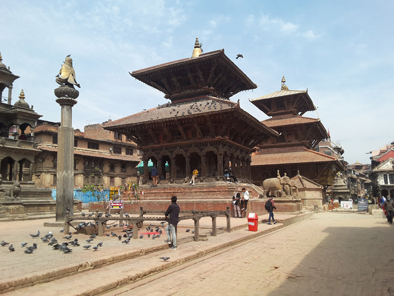 4ème jour 8 mars 2022: visite de Pashupatinath puis Bodnath et Patan Visite des Ghâts de Pashupathinath : le TEMPLE DE PASHUPATINATH situé à cinq kilomètres à l'est de Kathmandou, il est dédié au dieu Shiva avec ses deux toitures dorées et ses portes d'argent est célèbre pour sa superbe architecture. Il est interdit au non-hindouiste mais les voyageurs peuvent bien voir le temple et les activités qui y règnent depuis la rive est de la Bagmati, la rivière sacrée qui coule sur ce site sacré pour les hindouistes, lieu des crémations et rencontre avec les sadhus. sur les rives de la rivière Bagmati, Pashupatinath est, pour les hindous, l'un des lieux de pèlerinage les plus importants, avec Varanasi (Benares) et Hardwar-Rishikesh. Shiva est la divinité hautement vénérée ici. Le nombre d'ascètes errants (saddhus) en témoigne. Mais cette visite décevra peut-être les visiteurs. En effet, le fort beau temple de Pashupati (autre nom de Shiva, sous sa forme de Seigneur des troupeaux) est inaccessible à qui n'est pas hindou et les gardes armés à l'entrée sont patibulaires à souhait. Encore cette interdiction est-elle bizarre puisque des gens qui ne sont pas hindous du tout, mais qui ont la peau bronzée et un air local (en fait n'importe quel asiatique), pénètre dans le temple sans rencontrer la moindre difficulté. Si ce n'est pas une forme de racisme ... On pouvait contourner le temple et, par une immense porte à doubles vantaux gardée par un soldat pas du tout débonnaire, apercevoir, au loin dans la cour intérieure d'accès, un colossal Nandi de pierre qui, assis, tourne le dos et exhibe, de ce fait, généreusement ses attributs... . Les crémations rituelles ont lieu sur la berge opposée de la rivière. La discrétion est recommandée. On montera sur les escaliers en terrasse, d'où l'on a vue sur le temple. On peut aussi observer autour de soi les rangées fort esthétiques de petits chaitya dont chacun abrite un Shiva lingam. Quelques statues valent la photo; observer, en particulier, un Ganesh aux côtés d'un Garuda, une association rare.