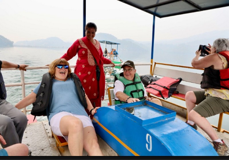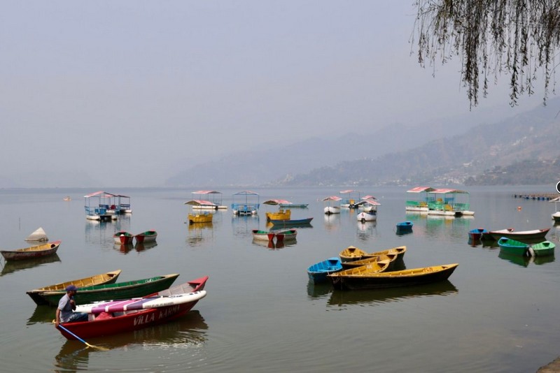 le lac Fewa environ 1 H de marche et Traverse en bateau, nuit à