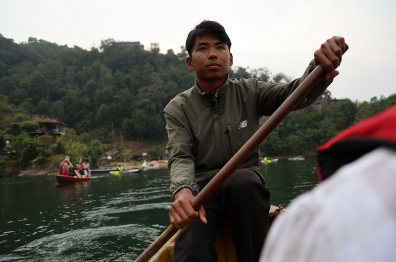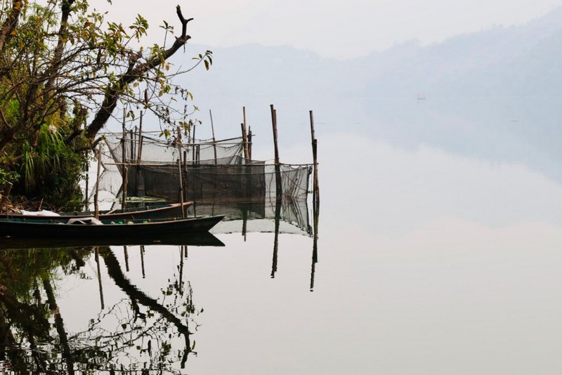 le lac Fewa environ 1 H de marche et Traverse en bateau, nuit à