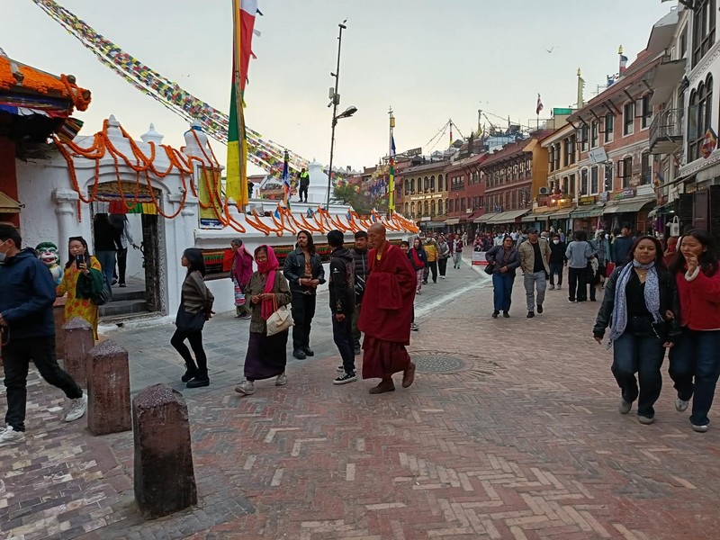la place où se tient le grand stupa de Bodhnath, par une ruelle